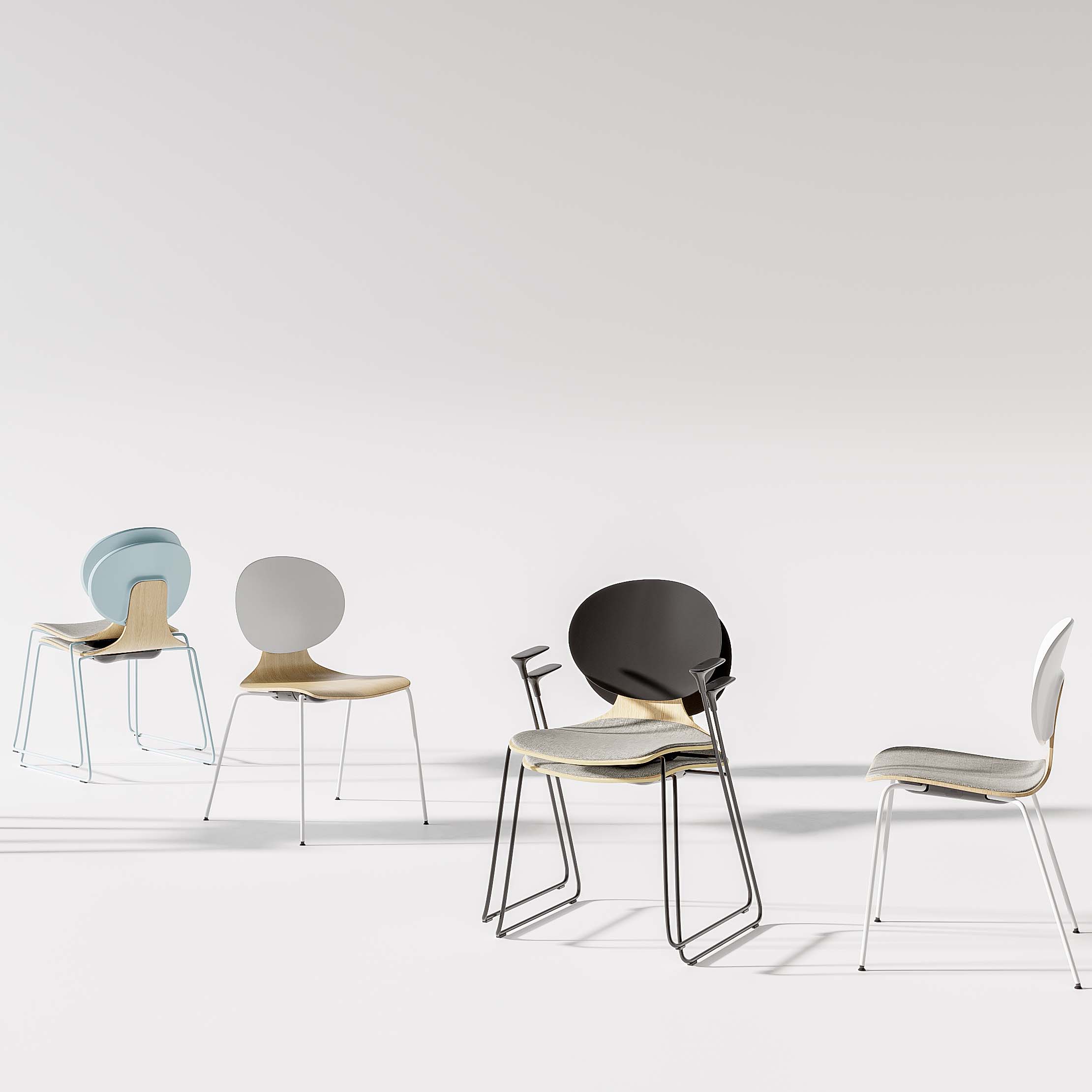 從椅子的各個角度看,靠背的視覺變化,就如同月亮的陰晴圓月,故得名LUNAR。LUNAR延續了鋼、塑、木三種材料的結合,造型現代、簡約。